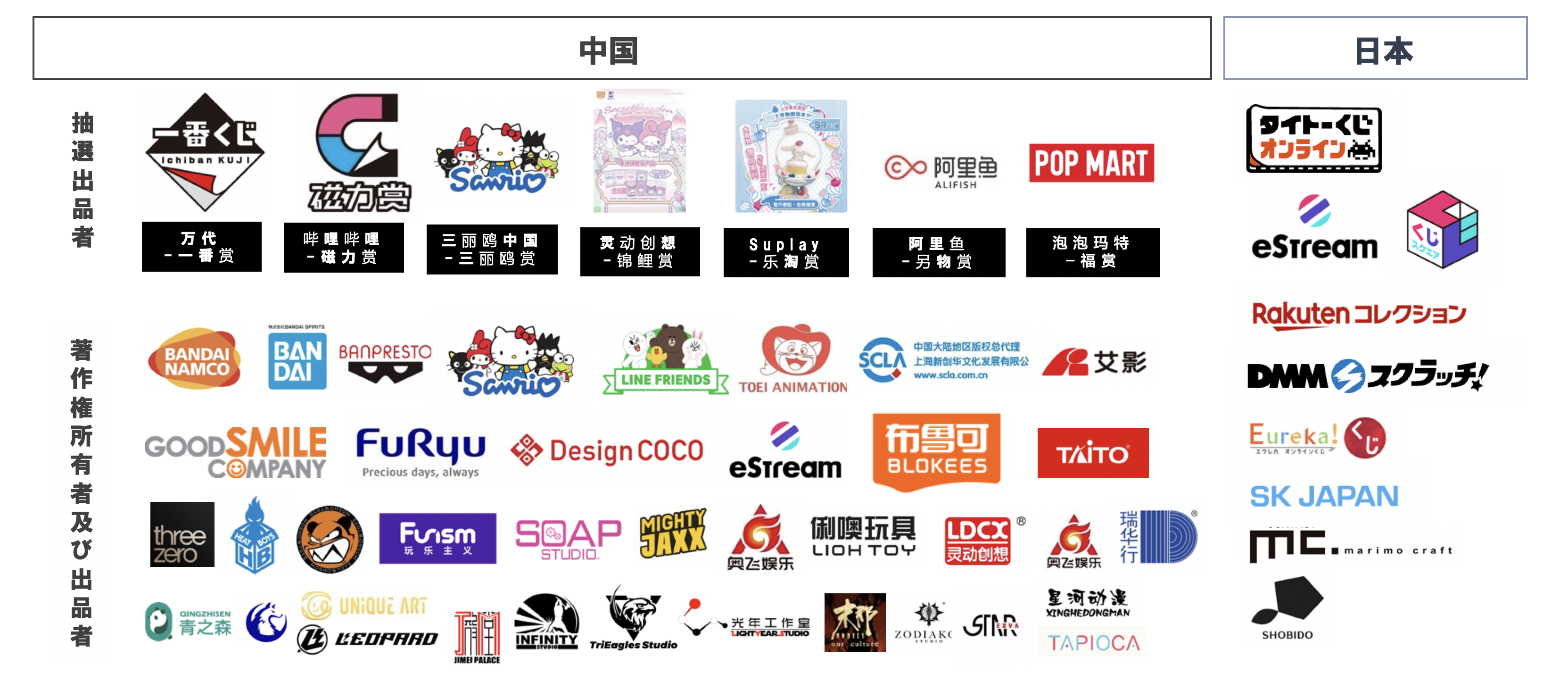 主要なライセンサー及び版権元と協力し、抽選景品や玩具を提供。二次元キャラクター商品の正規供給チェーンを構築しています。これにより、ファン層の 拡大と二次元市場の成長を実現します 。
