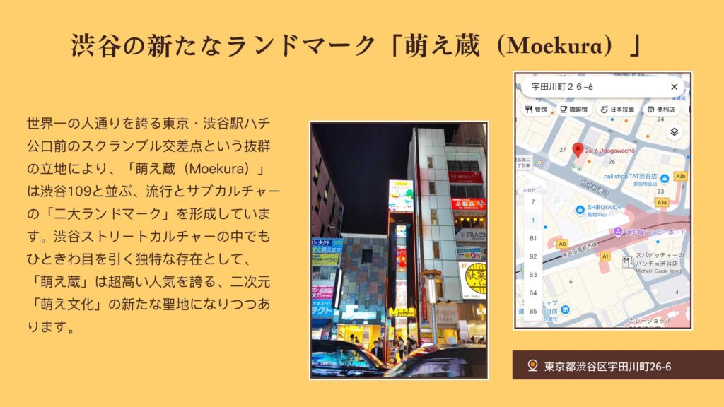 渋谷の新たなランドマーク「萌え蔵(Morkura)」 2025 8/08 NEWS 2025年8月8日 目次萌え蔵(Morkura) 『萌え蔵』 〒150-0042 東京都 渋⾕区宇⽥川町 26-6 ハビウル渋谷 NEWS 萌え蔵初コラボ!!